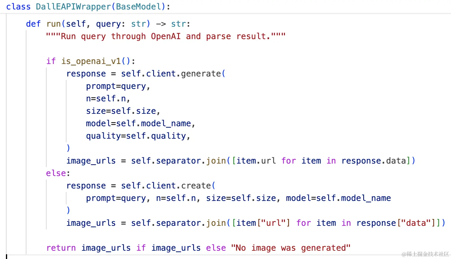 这里的DallEAPIWrapper(model="dall-e-3").run方法就是个函数,实际是去调用了OpenAI的接口。
