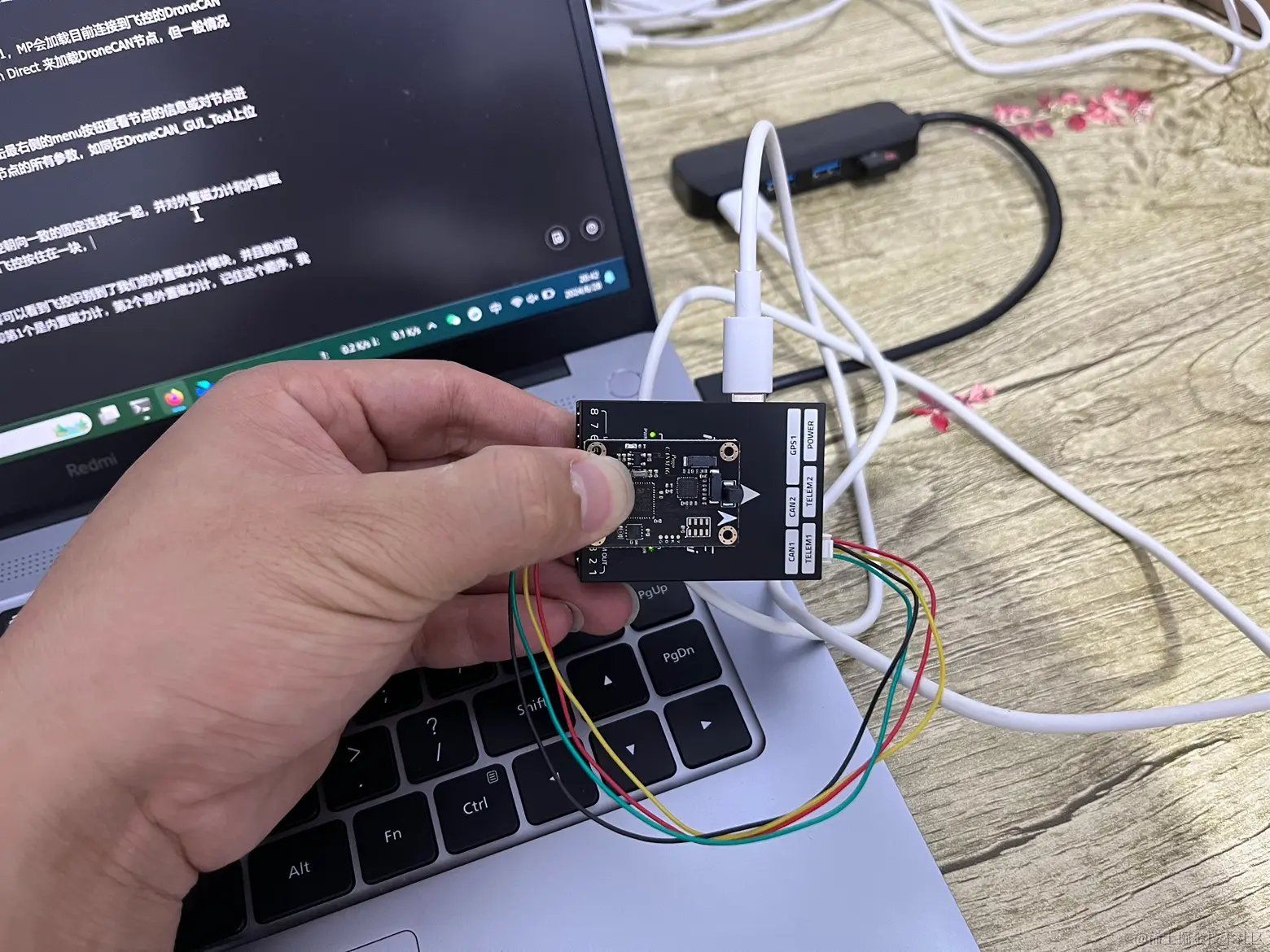 如果你还没安装和使用过DroneCAN_GUI_Tool上位机和Pogo-DroneCAN调试器,你可以查看 这个Pogo-DroneCAN调试器合集 阅读相关的教程/文章。我们将DroneCAN调试器和DroneCAN磁力计按照下图接线,并通过typeC接到电脑。