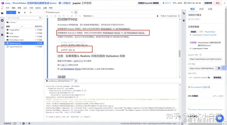输入并运行 cd PhotoMaker-style 命令,切换到 PhotoMaker-style 目录,然后运行 python app.py 命令。