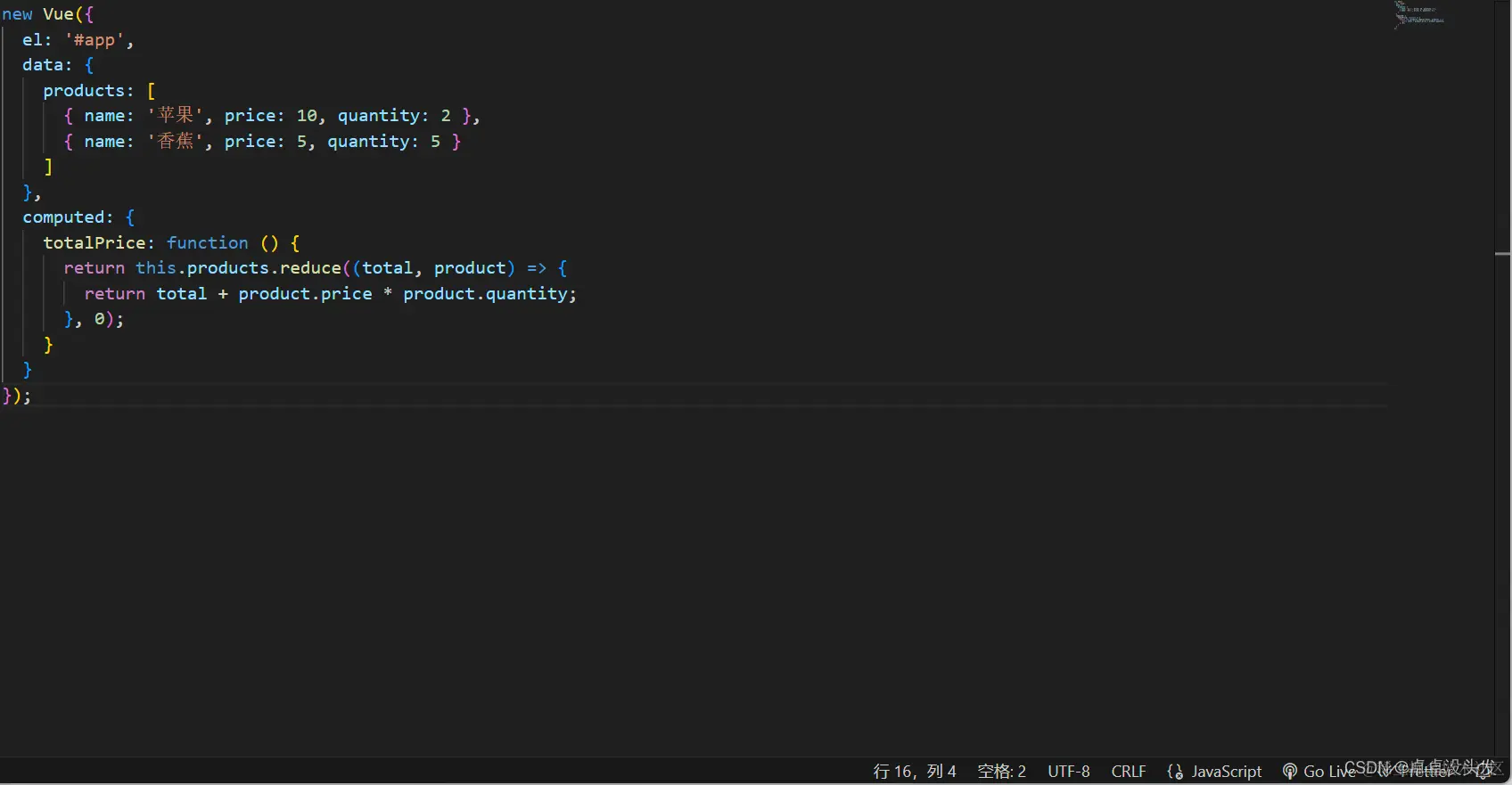 在这个例子中,totalPrice是一个派生的计算属性,它根据商品列表和数量计算总价。