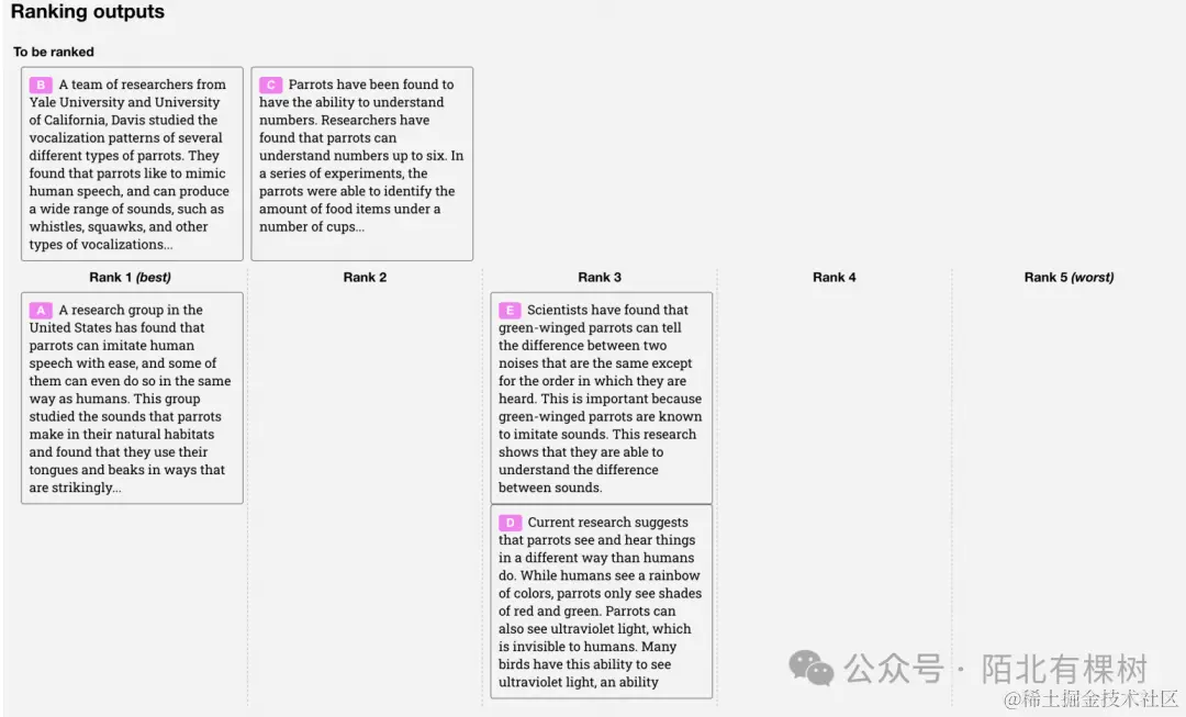 根据InstructGPT论文中介绍,训练奖励模型的样本数量是33000个,并由标注人员进行排序。下图给出了 InstructGPT中奖励模型训练样本标注示例。