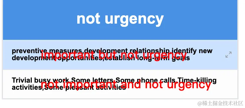 text: row===1? 'important but not urgency':'not important and not urgency',