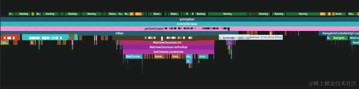 WebView创建时间下降到了17.9ms。将进程初始化的Perfetto打印出来: