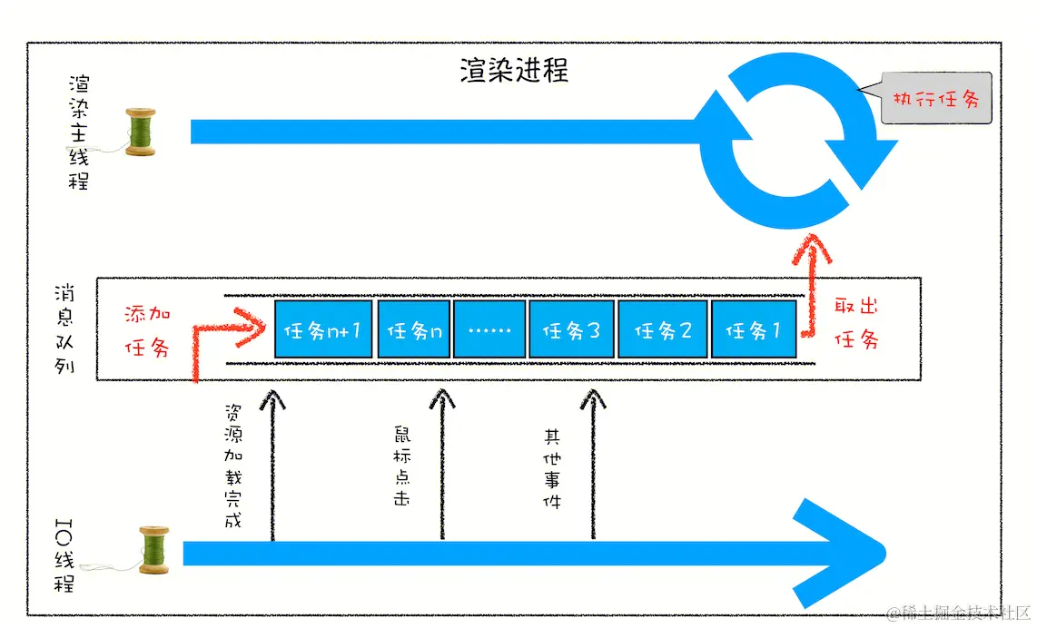 - 渲染主线程会循环的从消息队列头部取出任务并执行