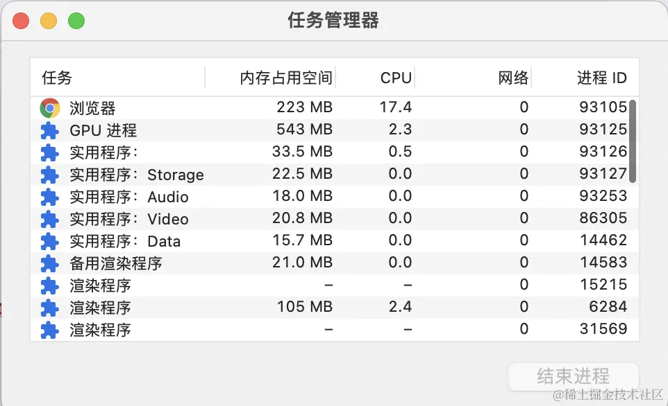 - GPU 进程。初衷是为了实现 3D CSS 的效果,只是随后网页、 Chrome 的 UI 界面都是采用 GPU 绘制的,使得 GPU 成为浏览器普遍的需求。