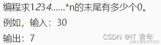 - 循环计算i从1到n的阶乘: a. 若i是5的倍数,则计算i除以5的结果,加到count上 b. 循环计算i除以5的结果是否还是5的倍数,若是,则再次计算结果除以5的结果,直到不是5的倍数为止,每次计算结果加到count上