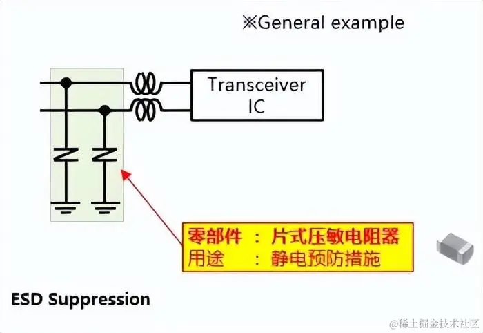 在通信I/F(通信)电路中,使用两根线与外部设备(CAN、Ethernet等)进行通信。此时,如果噪声或静电从通信线混入,则可能会导致收发器IC故障。因此,收发器电路中作为静电预防措施通常由压敏电阻器构成。找正品元器件,上唯样商城。