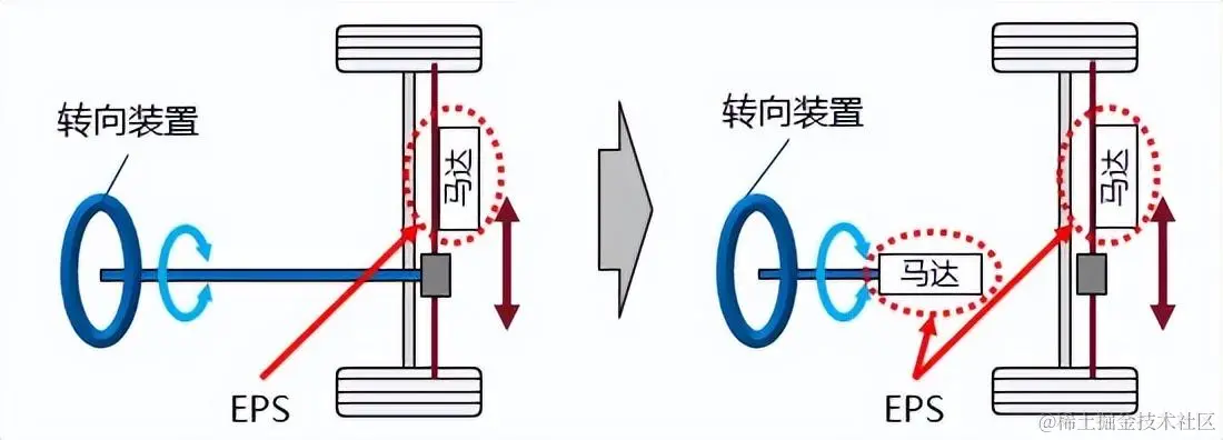 EPS(Electric Power Steering)是一种通过马达来辅助驾驶员操作方向盘的电动助力转向系统 。传统的液压助力转向系统使用发动机的动力来驱动液压泵以进行辅助。而EPS则根据转向装置的操作信息,通过电气控制来进行辅助。与液压助力转向系统相比,EPS不使用发动机的动力,因此可望提高燃效。