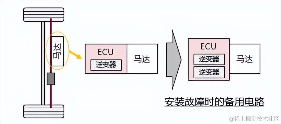 为了提高安全性和可靠性,马达驱动的逆变器电路等由2个电路构成并进行冗余化。