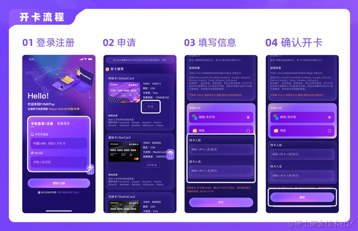 按图操作即可开卡成功,推荐5347开头的mastercard,支持的种类多点