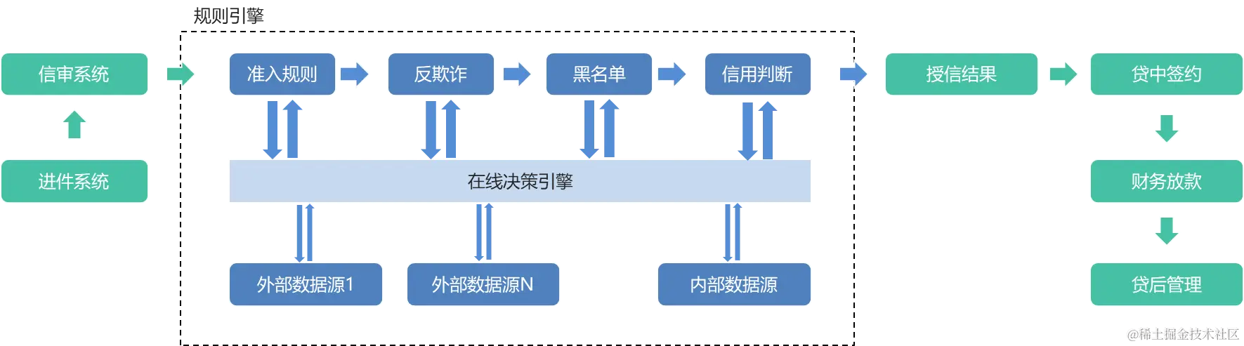 - 数据存储:保存规则引擎所需的各类数据,包括规则配置、业务数据、中间结果等;