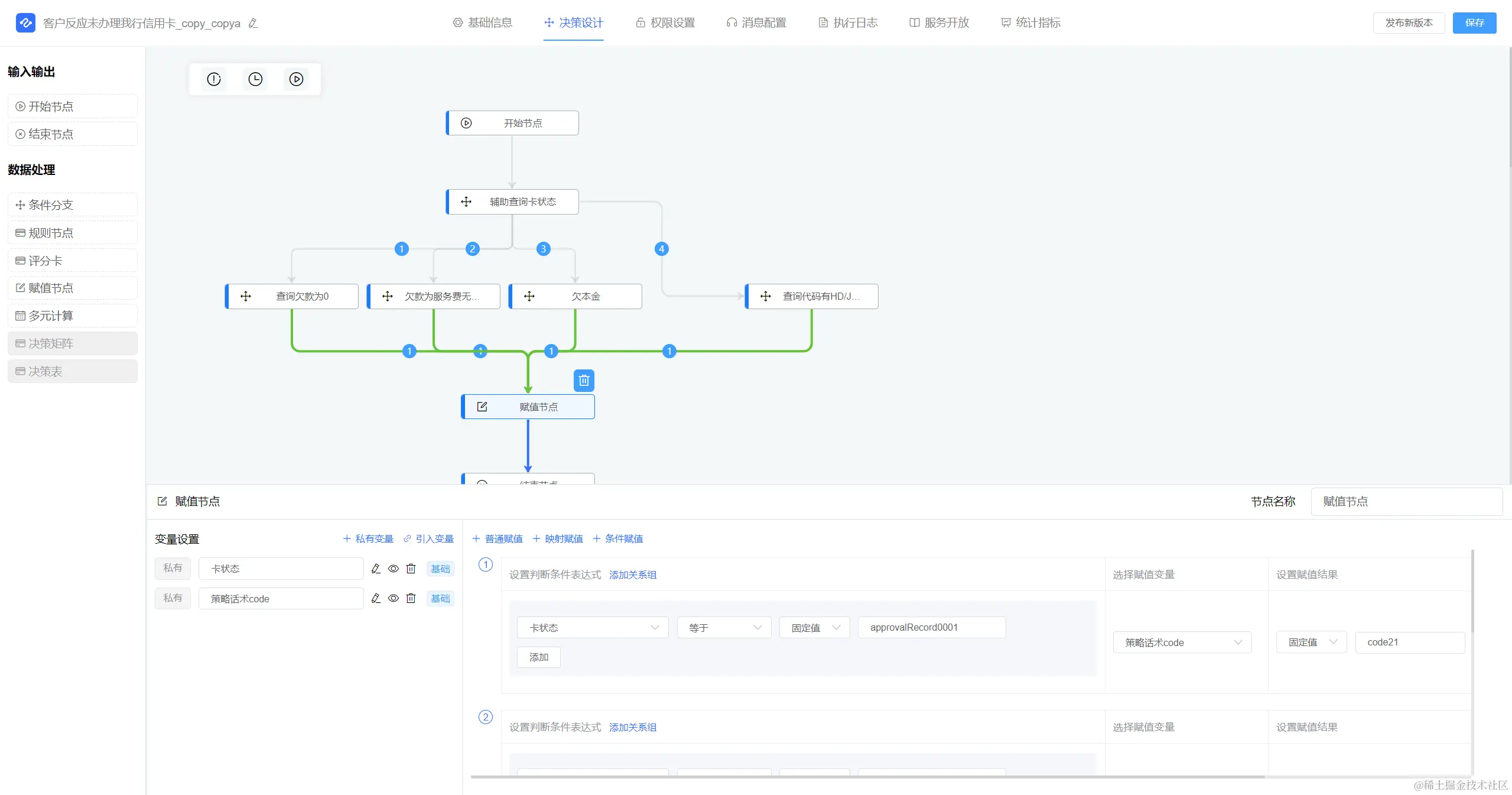**1、可视化决策编排,**它是一种组织过程,用于将业务规则、策略、基础变量以及衍生变量等。以逻辑和连贯的方式整合在一起,形成一套能够准确反映业务目标,并且具备可重复执行性的程序化集合。
