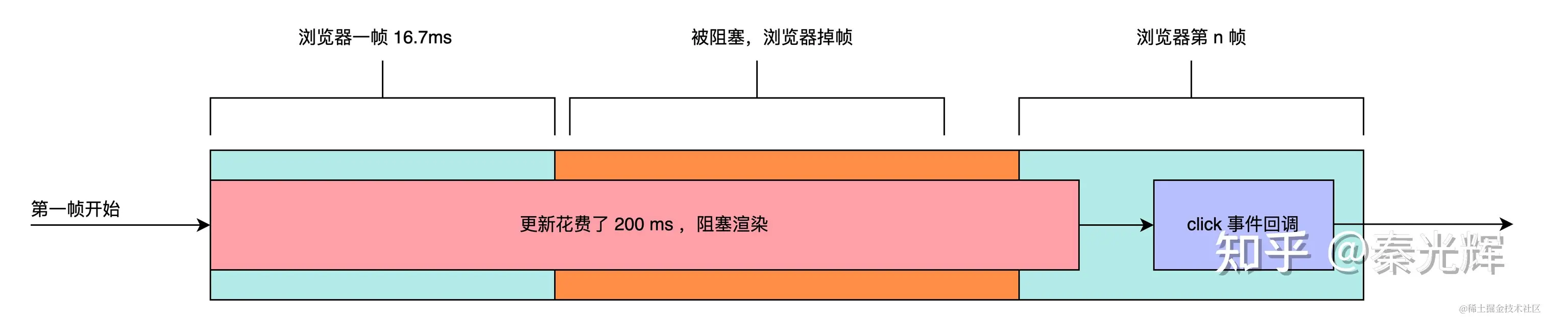 Concurrent Mode指的是react的并发更新,在18版本前,react如果要执行更新,由于js是单线程语言,同一时间只能执行一个任务,因此react更新过程不可中断。如果react更新过程中有动画执行,就会出现掉帧的情况,如下图,只有更新完成之后才能执行其他任务事件回调。