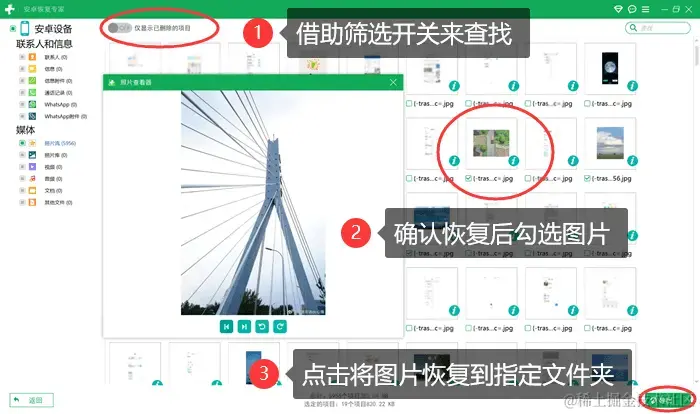市场上有许多专业的恢复工具,如【数据蛙安卓恢复专家】,它可以在一定程度上帮助我们从各种存储设备中恢复丢失的照片,包括手机、SD卡、平板等。使用它找回被删除照片的步骤非常简单,只需几步,就能让那些消失的照片重见天日。