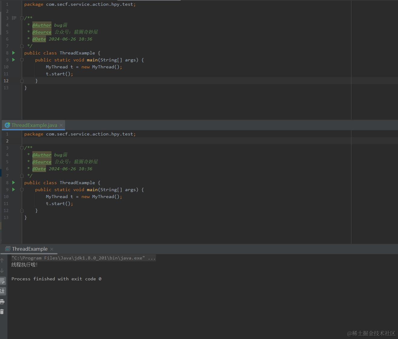 接着,我们便来通过第二种方式来创建线程,看看这种方式有何不同之处,注意看!示例代码如下: