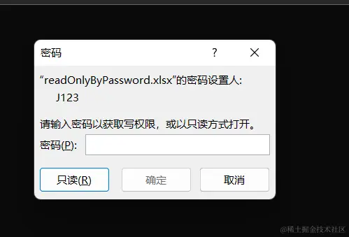 打开“readOnlyByPassword.xlsx”时,可以看到下图: