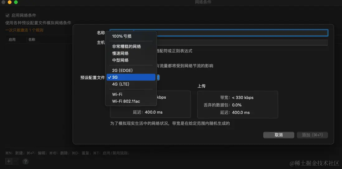 在需要进行弱网测试的情况下,只需要点击顶部菜单栏【工具】-【网络状况】