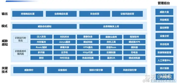 **4、AI技术与人工审核人脸反欺诈系统,防范“AI换脸”的虚假视频和虚假图片。**顶象全链路全景式人脸安全威胁感知方案通过设备环境、人脸信息、图像鉴伪、用户行为、交互状态等多维度信息进行智能核验,快速识别注入攻击、活体伪造、图像伪造、摄像头劫持、调试风险、内存篡改、Root/越狱、恶意Rom、模拟器等运行和系统类等30多类恶意攻击行为,及时发现伪造视频、虚假人脸图片、异常交互行为后,可自动阻断操作。同时能够灵活配置视频核验强度与友好度,实现对正常用户无感验证,对异常用户加强验证的动态机制。