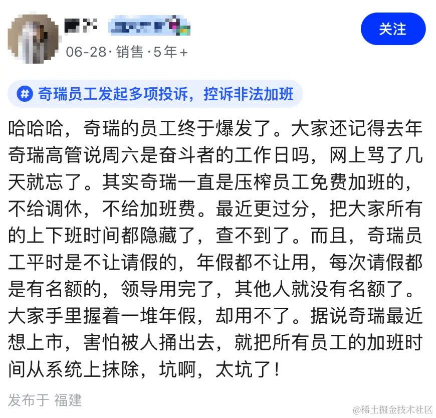 除了将周六定义成「奋斗者的工作日」,不给调休也不给加班费,平时请假也要抢名额,有年假却用不了。