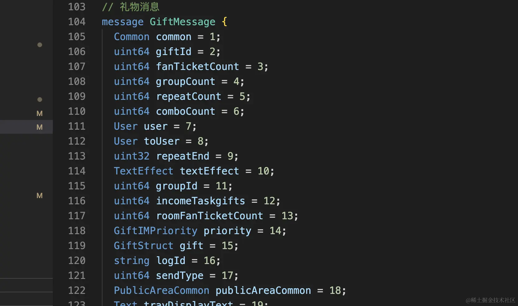 就可以根据这个信息映射出来我们的proto文件中GiftMessage的定义内容了:
