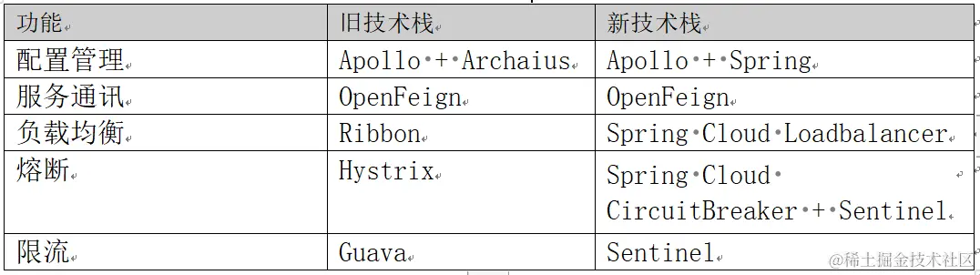 对于Spring Cloud Netflix的代替方案,Spring Cloud官方提供了建议,但根据框架功能性、稳定性等方面考虑,我们融合了原生Spring Cloud生态和Spring Cloud Alibaba的功能优势,使用下列实现: