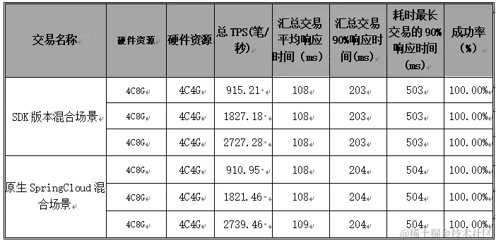 - 原生SpringCloud和SDK版本的性能基本一致,SDK内部逻辑对交易影响,