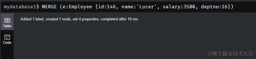 MERGE (e:Employee {id:146, name:'Lucer', salary:3500, deptno:16})