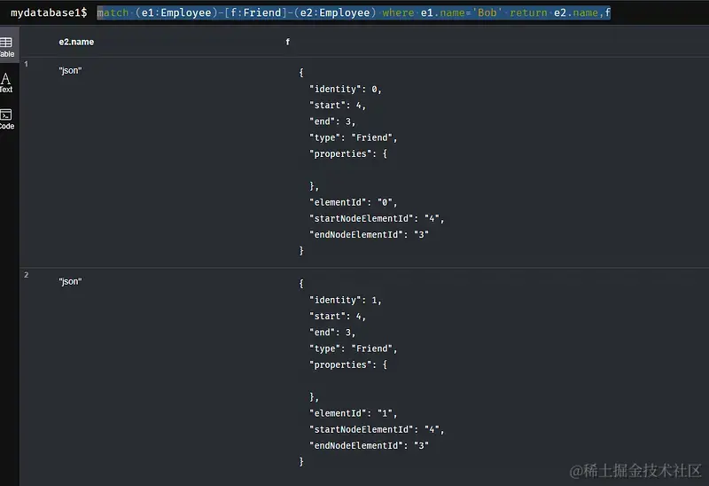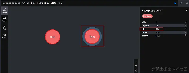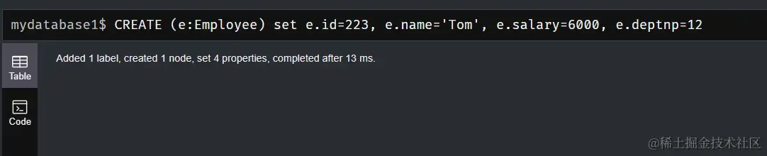 - 节点名称 e 是当前语句中的临时变量,节点标签 Employee 才真正保存到图数据库中;