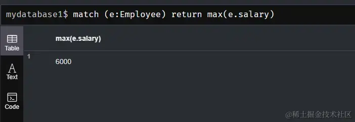 match (e:Employee) return max(e.salary)