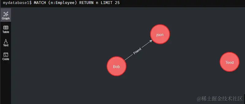 案例: 给标签Employee中,name=‘Bob’和name=‘json’的两个节点建立Friend关系:
