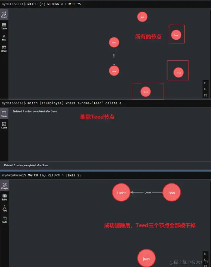 match (e:Employee) where e.name='Teed' delete e