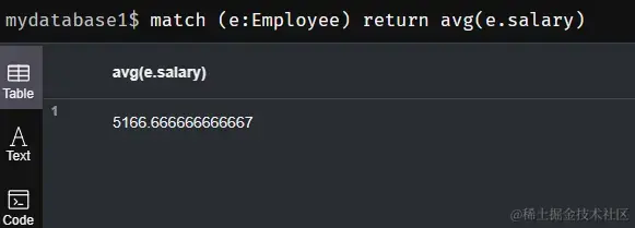 match (e:Employee) return avg(e.salary)
