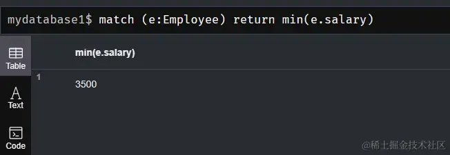 match (e:Employee) return min(e.salary)