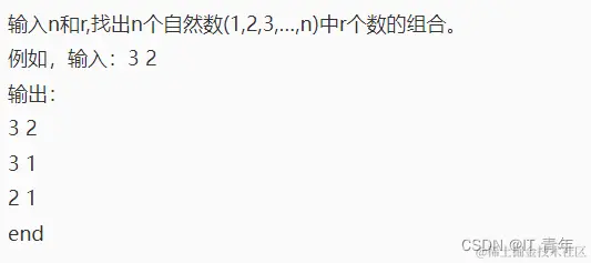 递归终止的条件是当r等于1时,我们就可以直接输出剩下的n个数中的每一个数作为一个组合。