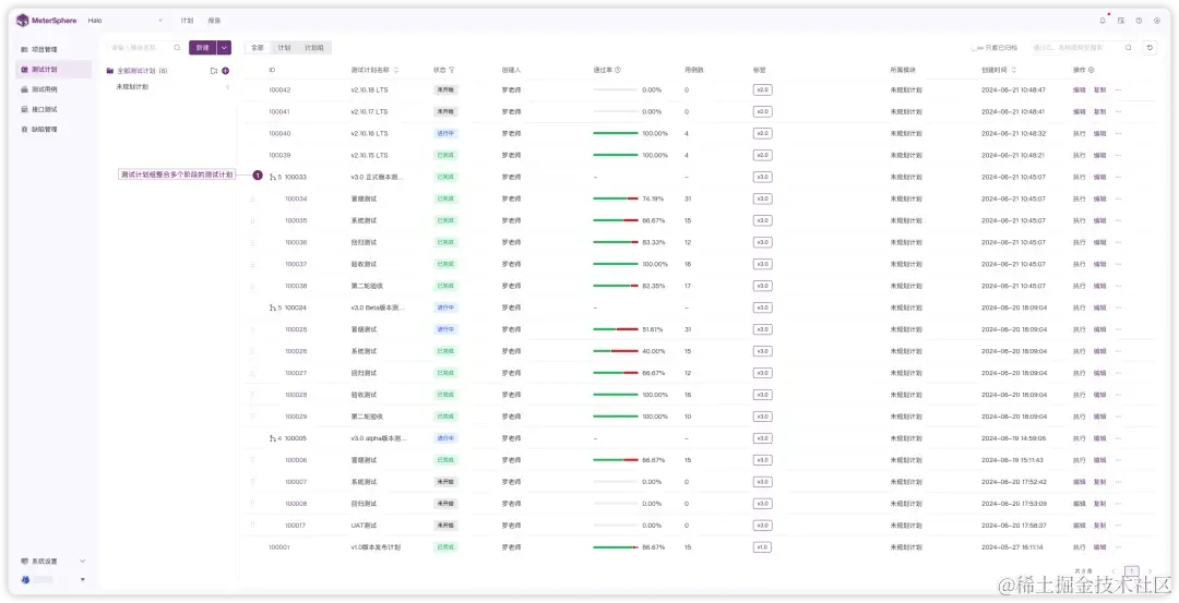 ▲ 图3 MeterSphere v3.0“测试计划”管理界面