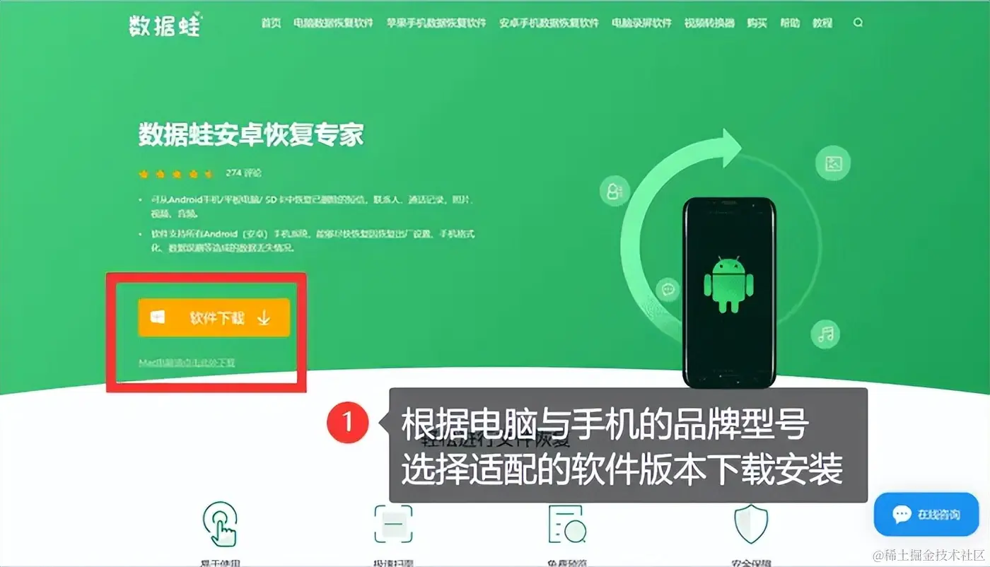 步骤1:首先,你需要在电脑上下载并安装【数据蛙安卓恢复专家】。它支持Windows和Mac操作系统,根据自己的电脑系统选择合适的版本进行安装。