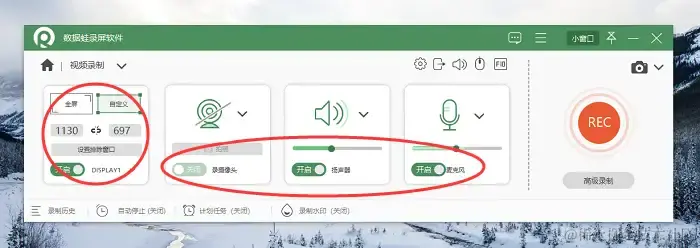 步骤2:在视频录制模式中,你可以规划录制的屏幕区域,如果需要录制声音,请确保已开启麦克风或系统声音录制选项。