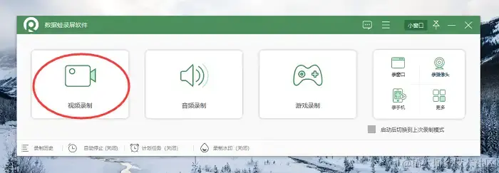 步骤1:打开数据蛙录屏软件并进入到用户页面,你可以选择不同的录制模式,如视频录制、手机录制或游戏录制等。