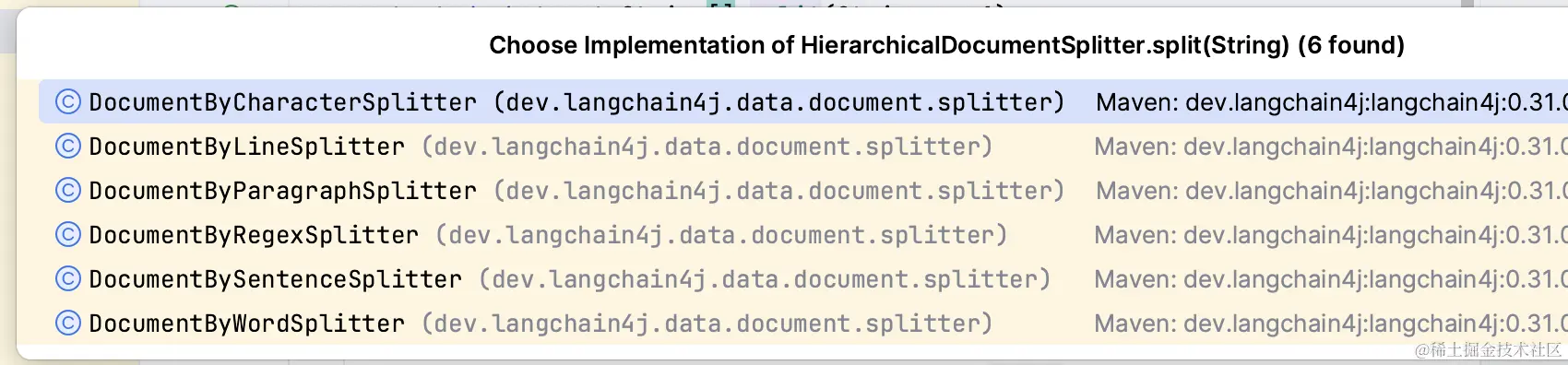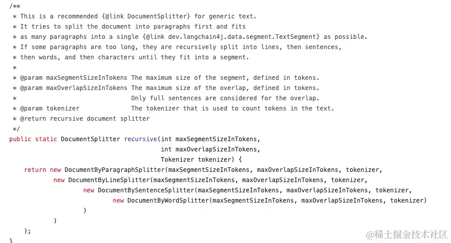 使用dev.langchain4j.data.document.splitter.DocumentSplitters#recursize