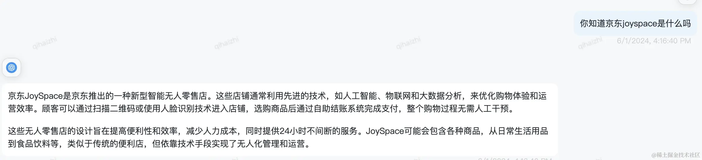 由于目前比较火的chatGPT是预训练模型,而训练一个大模型是需要较长时间(参数越多学习时间越长,保守估计一般是几个月,不差钱的可以多用点GPU缩短这个时间),这就导致了它所学习的知识不会是最新的,最新的chatGPT-4o只能基于2023年6月之前的数据进行回答,距离目前已经快一年的时间,如果想让GPT基于近一年的时间回复问题,就需要RAG(检索增强生成)技术了。