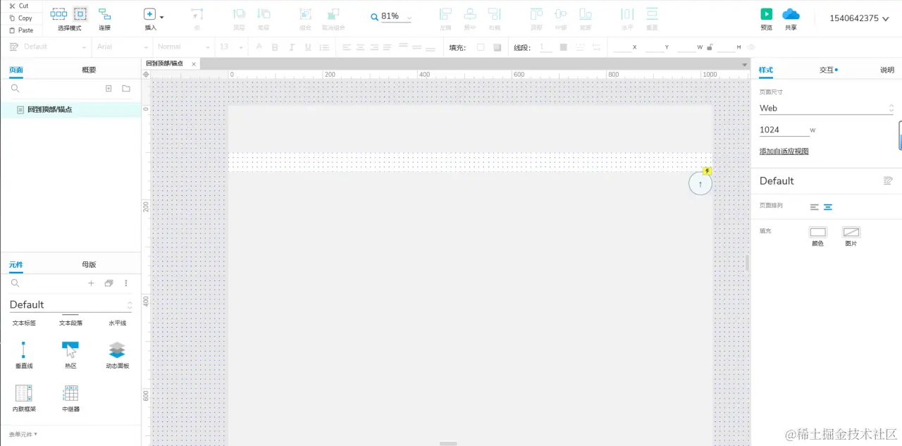 【返回顶部】的按钮是固定在页面上的,所以需要对按钮所在的【动态面板】配置【固定到浏览器】