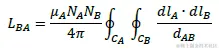 因此得到线圈B作用在线圈A上的互感量LBA为: