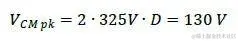 为了预估共模噪声的大小,通常需要假设共模噪声回路上的杂散电容量,一般在几十pF的等级。在图Fig.2的例子中,假设杂散电容量为20pF,当输入电源为230Vac,主功率开关管的开关频率为200KHz时开通关断总脉宽为1μs且上升下降沿分别为0.2μs,则输入端最大电压为230∙√2=325V,交流输入经开关的占空比为𝐷=1𝜇𝑠∙200𝐾𝐻𝑧=0.2,在频谱密度分布上第一个转角频率为: