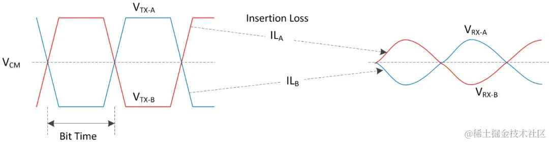 【Fig.6 差分传输线上的线路插入损耗导致信号质量受影响示意图】
