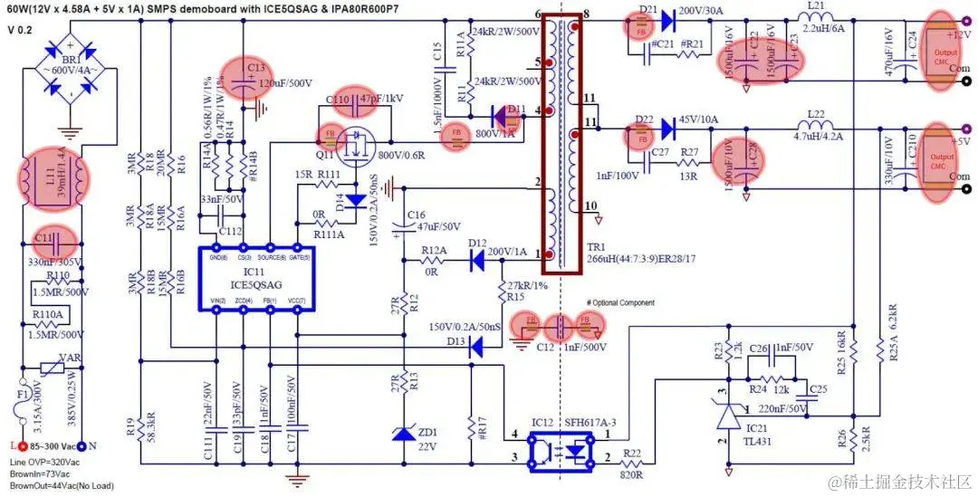 【Fig. 2 EMI对应策略元件示例(Infineon DEMO_5QSAG_60W1)】