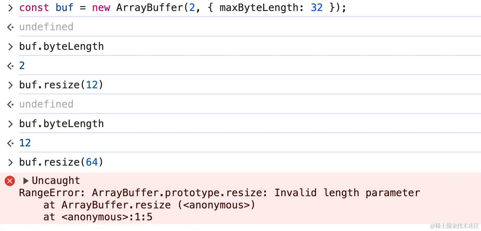 > const buf = new ArrayBuffer(2, { maxByteLength: 32 });