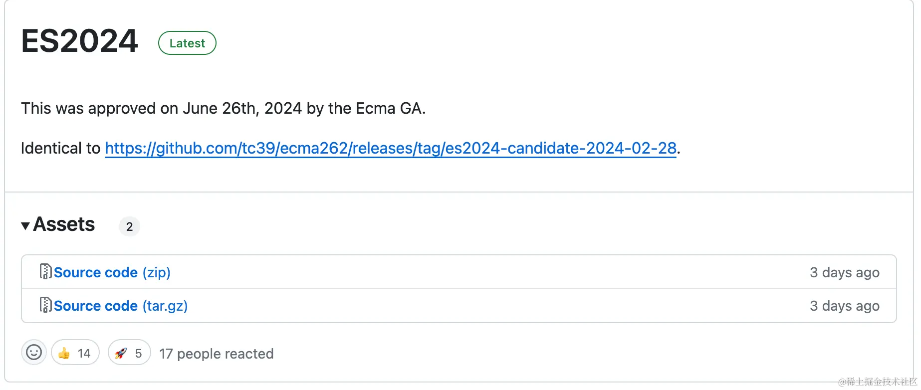 2024 年 6 月 26 日,第 127 届 Ecma 大会批准了 ECMAScript 2024 语言规范,这意味着它现在正式成为标准。