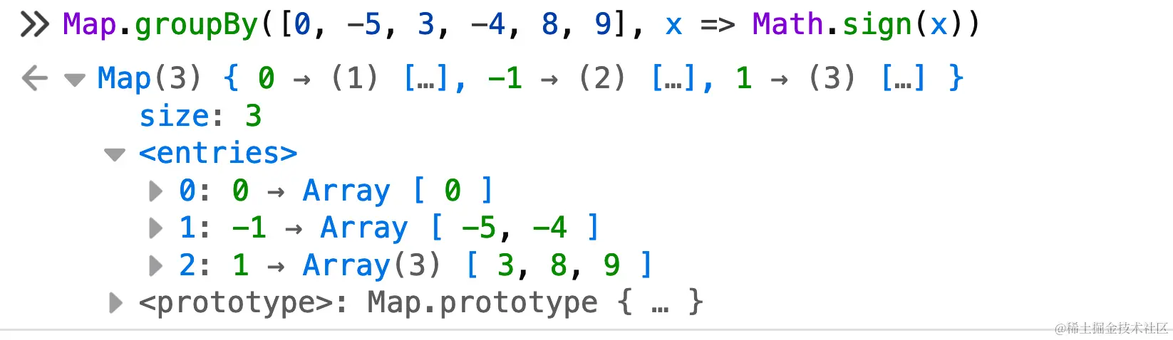 Map.groupBy() 将可迭代对象分组为一个新的 Map,Map中的 key由回调提供: