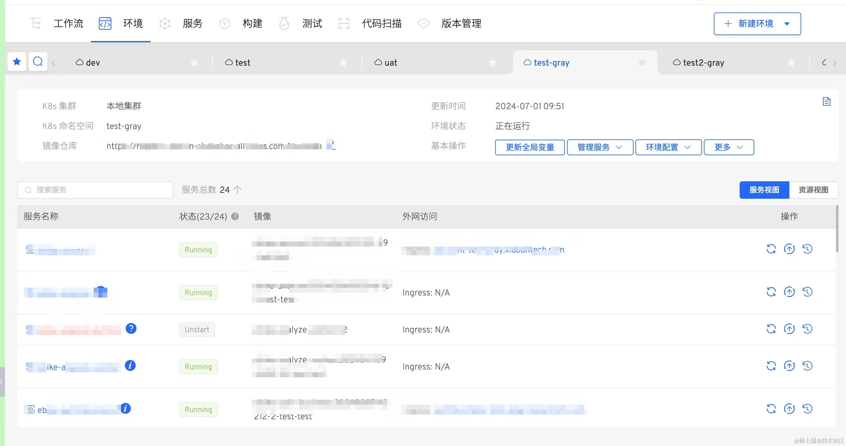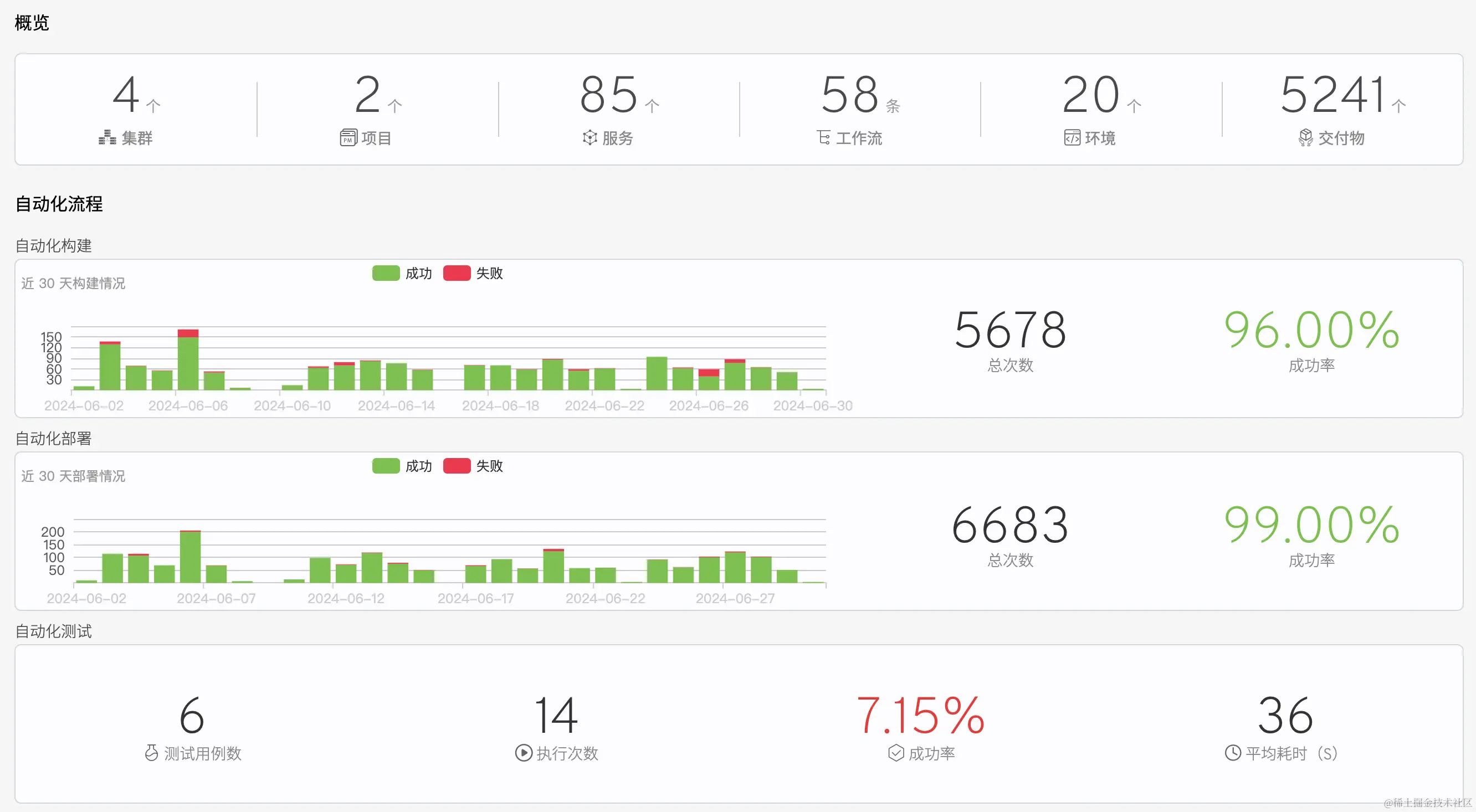 目前已经接入 2 个项目,4 个集群,实现 20 套环境的自动化流程。