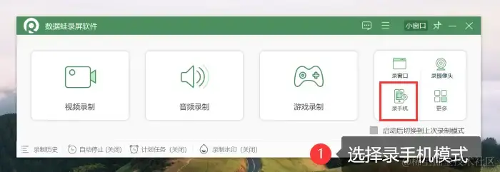 步骤1:在电脑上安装数据蛙录屏软件,进入软件首页,选择 【录手机】 模式。